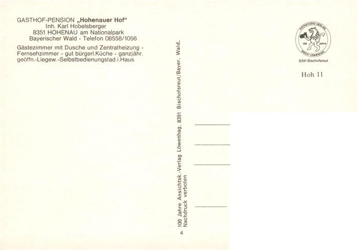 73896666 Hohenau Niederbayern Pension Hohenauer Hof postalisch nicht gelaufen Erhaltung siehe scans [WerneD78] KatCode: 11110009272127