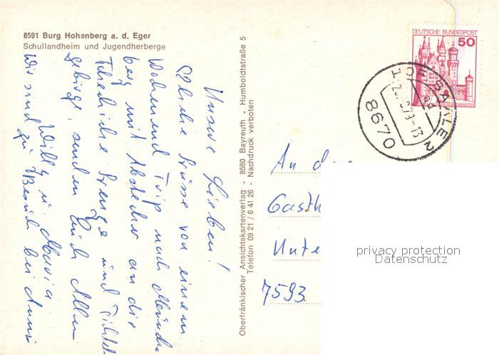 73305312 alte Postkarte Hohenberg Eger Burg Hohenberg Panorama Burgtor Stadtmauer postalisch gelaufen Erhaltung siehe scans [WerneD78] KatCode: 11110009479127