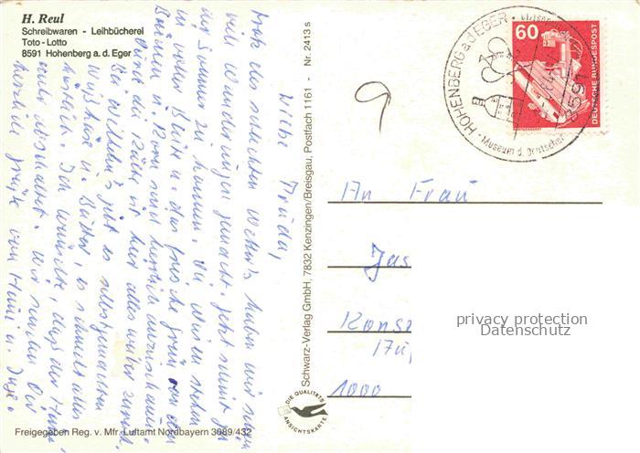 74034382 alte Postkarte Hohenberg Eger Fliegeraufnahme postalisch gelaufen Erhaltung siehe scans [FriedD77] KatCode: 11110009479127