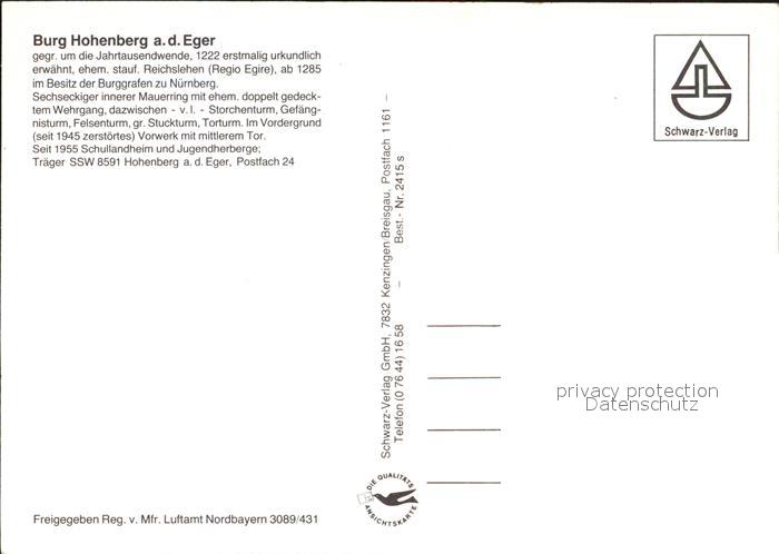72599503 Hohenberg Eger Fliegeraufnahme Burg postalisch nicht gelaufen Erhaltung siehe scans [LiesaD40] KatCode: 11110009479127