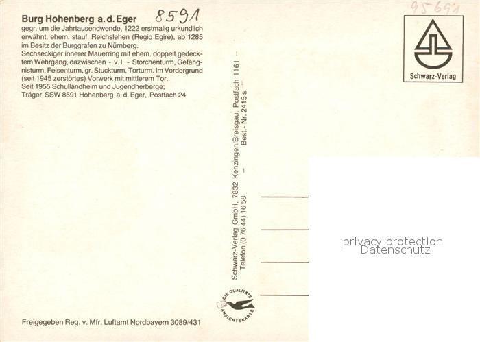 73031926 Hohenberg Eger Fliegeraufnahme Burg postalisch nicht gelaufen Erhaltung siehe scans [KathaD81] KatCode: 11110009479127