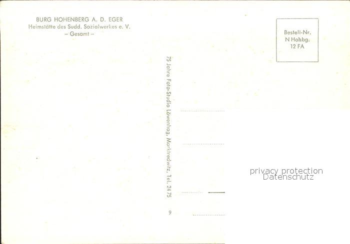 71932091 Hohenberg Eger Gesamtansicht Burg Hohenberg Heimstaette des Sudd. Sozialwerkes postalisch nicht gelaufen Erhaltung siehe scans KatCode: 11110009479127