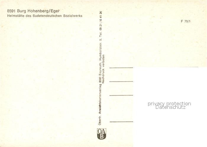 73239452 Hohenberg Eger Panorama Heimstaette Sudetendeutsches Sozialwerk postalisch nicht gelaufen Erhaltung siehe scans [KathaD81] KatCode: 11110009479127
