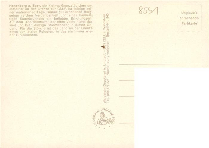 73936786 Hohenberg Eger Storchenturm Panorama Burghof Der boehmische Musikant Rathaus postalisch nicht gelaufen Erhaltung siehe scans [WerneD78] KatCode: 11110009479127