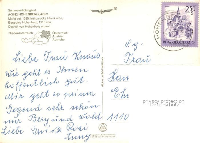 73339592 alte Postkarte Hohenberg Niederoesterreich Fliegeraufnahme postalisch gelaufen Erhaltung siehe scans [FriedD77] KatCode: 11390122031404