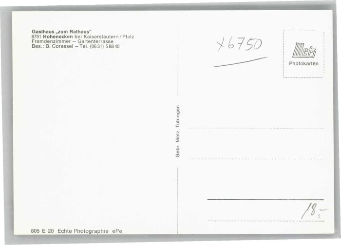40700613 Hohenecken Kaiserslautern Rheinland-Pfalz Gasthaus zum Rathaus postalisch nicht gelaufen Alte Ansichtskarte Postkarte Katcode 11110007312000