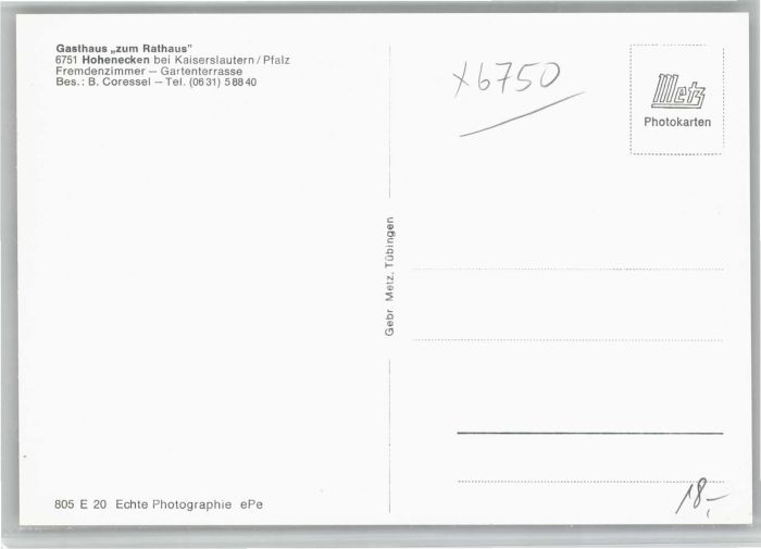 40700621 Hohenecken Kaiserslautern Rheinland-Pfalz Gasthaus zum Rathaus postalisch nicht gelaufen Alte Ansichtskarte Postkarte Katcode 11110007312000