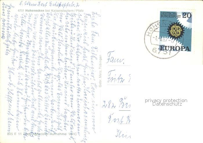 72114109 alte Postkarte Hohenecken mit Burg postalisch gelaufen Erhaltung siehe scans KatCode: 11110007312000