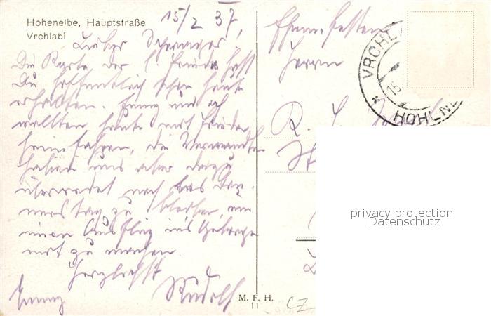 73849737 Hohenelbe Vrchlabi CZ Hauptstrasse postalisch gelaufen Erhaltung siehe scans [WerneD78] old postcard Wern Katcode 11520