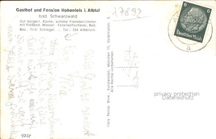 32214249 alte Postkarte Hohenfels Albbruck Gasthof Pension postalisch gelaufen Erhaltung siehe scans KatCode: 11110008337002
