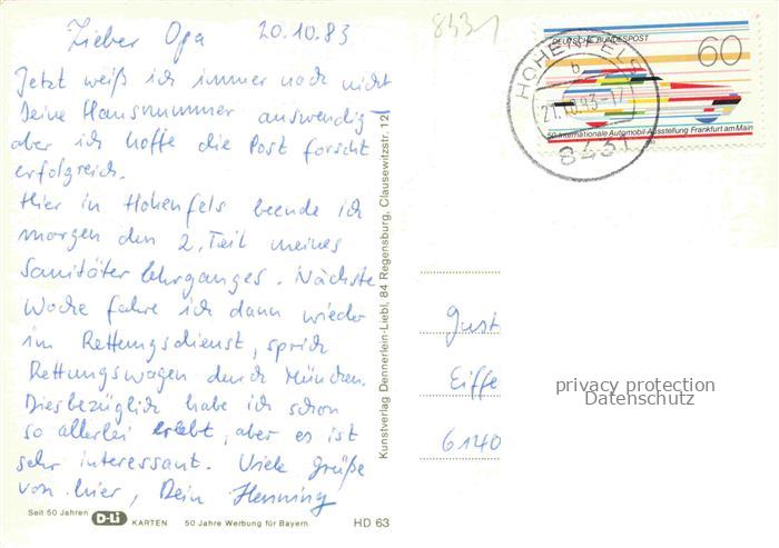 74049311 alte Postkarte Hohenfels Oberpfalz Panorama BRK Jugendhaus postalisch gelaufen Erhaltung siehe scans [FriedD77] KatCode: 11110009373134