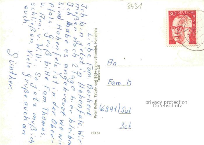 74049312 alte Postkarte Hohenfels Oberpfalz Panorama Hauptstrasse postalisch gelaufen Erhaltung siehe scans [FriedD77] KatCode: 11110009373134