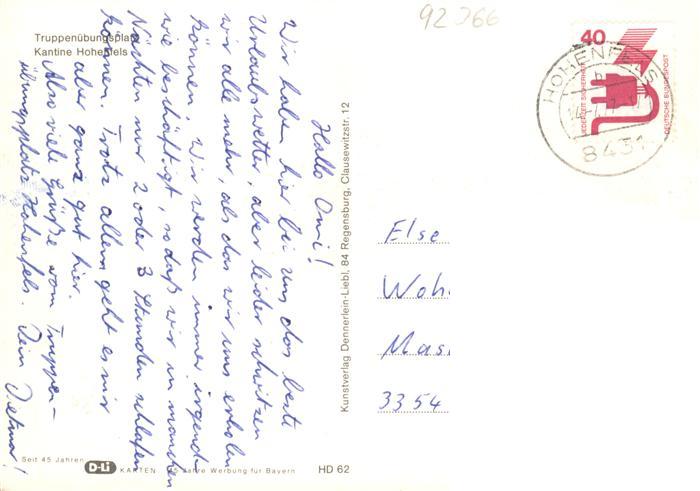 73884533 alte Postkarte Hohenfels Oberpfalz Truppenuebungsplatz Kantine Hohenfels postalisch gelaufen Erhaltung siehe scans [WerneD78] KatCode: 11110009373134