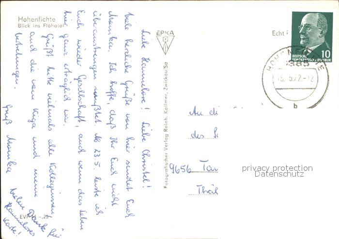 72381946 alte Postkarte Hohenfichte Blick ins Floehatal postalisch gelaufen Erhaltung siehe scans KatCode: 11110014177260