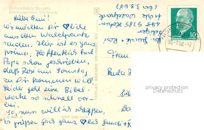 73801623 alte Postkarte Hohenfichte Erholungsheim Waldpark postalisch gelaufen Erhaltung siehe scans [WerneD78] KatCode: 11110014177260