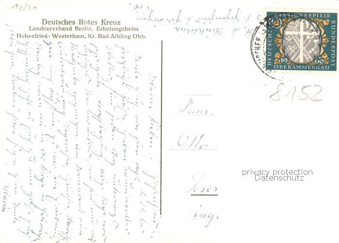 73857900 alte Postkarte Hohenfried Feldkirchen-Westerham DRK Landesverband Berlin Erholungsheim postalisch gelaufen Erhaltung siehe scans [FriedD77] KatCode: 11110009187130