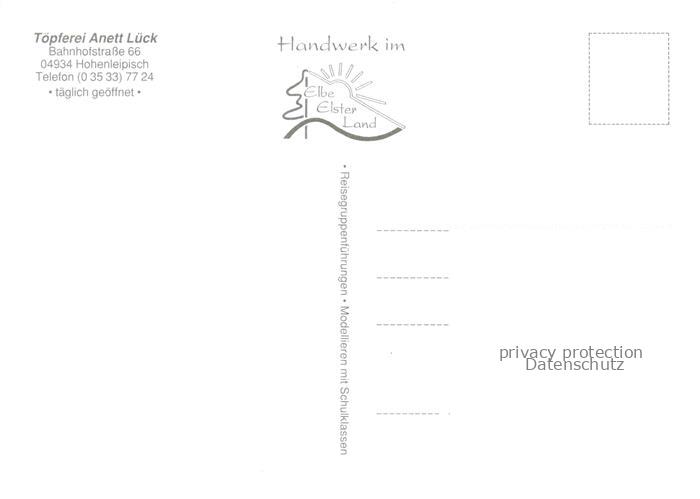74043173 Hohenleipisch Toepferei Anett Lueck Werkstatt erleben postalisch nicht gelaufen Erhaltung siehe scans [WerneD78] KatCode: 11110012062240