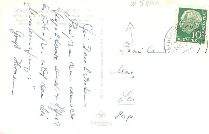 73900160 alte Postkarte Hohenlimburg Hotel Bentheimer Hof Foyer Treppenaufgang postalisch gelaufen Erhaltung siehe scans [FriedD77] KatCode: 11110005914000