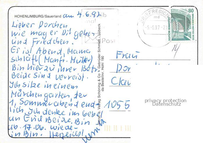 74023776 alte Postkarte Hohenlimburg Limburger Freiheit Fussgaengerzone Lennepark Partie am Hallenbad postalisch gelaufen Erhaltung siehe scans [FriedD77] KatCode: 11110005914000