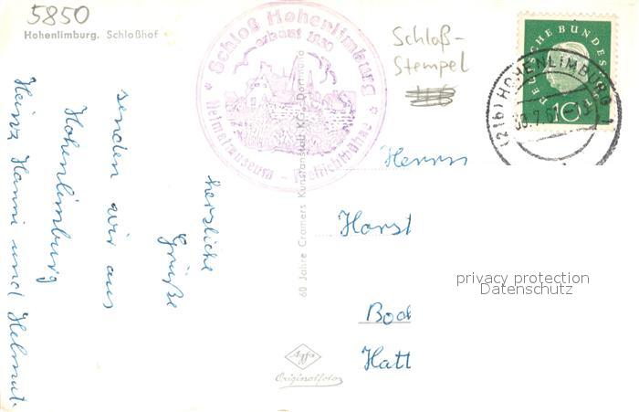 73700105 alte Postkarte Hohenlimburg Schlosshof Schlossstempel postalisch gelaufen Erhaltung siehe scans [LiesaD40] KatCode: 11110005914000
