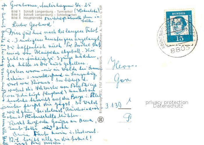 72962621 alte Postkarte Hohenlohe Bopfingen Langenburg Turnierhof Schlossgarten Hauptstrasse postalisch gelaufen Erhaltung siehe scans [NatalD47] KatCode: 11110008136045