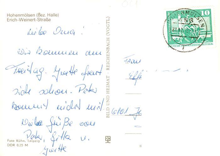 73873514 alte Postkarte Hohenmoelsen Erich Weiner Strasse postalisch gelaufen Erhaltung siehe scans [FriedD77] KatCode: 11110015084235