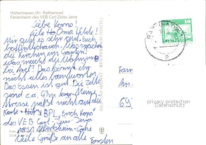 72250852 alte Postkarte Hohennauen Ferienheim des VEB Carl Zeiss Jena postalisch gelaufen Erhaltung siehe scans KatCode: 11110012063274
