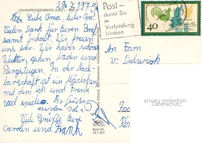73840046 alte Postkarte Hohenpeissenberg Fliegeraufnahme postalisch gelaufen Erhaltung siehe scans [FriedD77] KatCode: 11110009190130