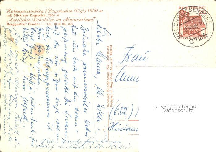 72111094 alte Postkarte Hohenpeissenberg mit Kirche Berggasthof Fischer und Zugspitzblick postalisch gelaufen Erhaltung siehe scans KatCode: 11110009190130