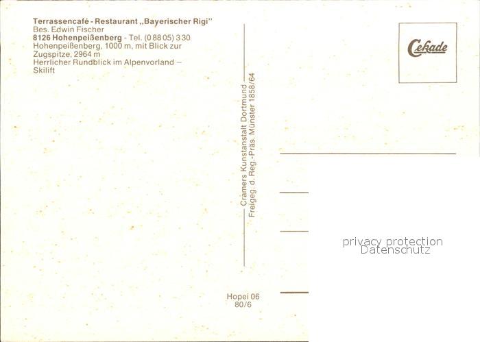 72304626 Hohenpeissenberg Terrassencafe Bayerischer Rigi Hund Bari Weterwarte Berggasthof postalisch nicht gelaufen Erhaltung siehe scans KatCode: 11110009190130