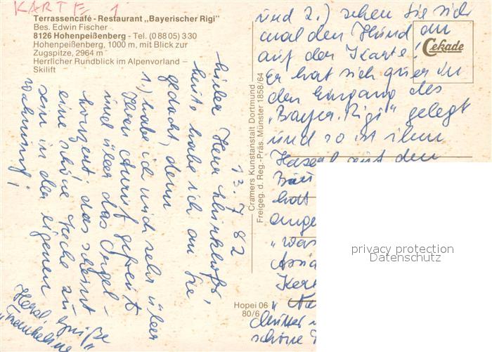 73653606 Hohenpeissenberg TerrassenCafe Restaurant Bayerischer Rigi Berggasthof Berhardiner Hund Wetterwarte Wallfahrtskirche Alpenpanorama postalisch nicht gelaufen Erhaltung siehe scans [FriedD77] KatCode: 11110009190130