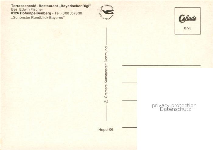 73171359 Hohenpeissenberg Terrassencafe Restaurant Bayerischer Rigi Rundblick Wallfahrtskirche Wetterwarte Alpen Bernhardiner Hund postalisch nicht gelaufen Erhaltung siehe scans [FriedD77] KatCode: 11110009190130
