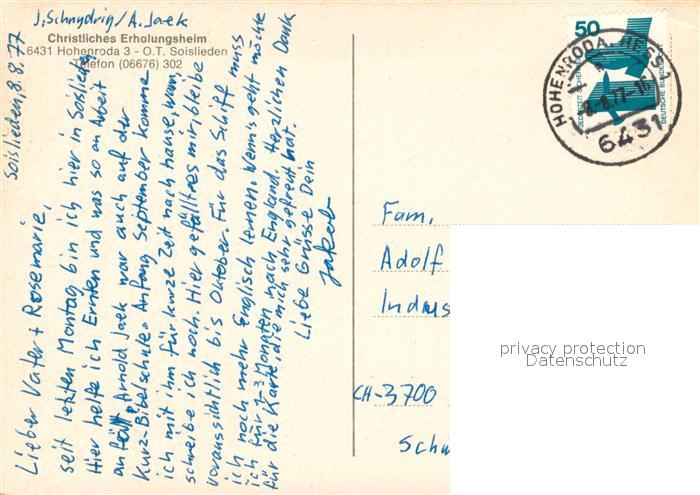 73654405 alte Postkarte Hohenroda Hessen Christliches Erholungsheim Westseite Fachwerkbau Panoramaweg Felsmassiv postalisch gelaufen Erhaltung siehe scans [WerneD78] KatCode: 11110006632010