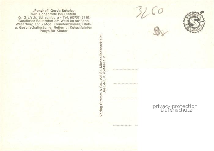 73666266 Hohenrode Rinteln Ponyhof Gerda Schulze postalisch nicht gelaufen Erhaltung siehe scans [LiesaD40] KatCode: 11110003257031