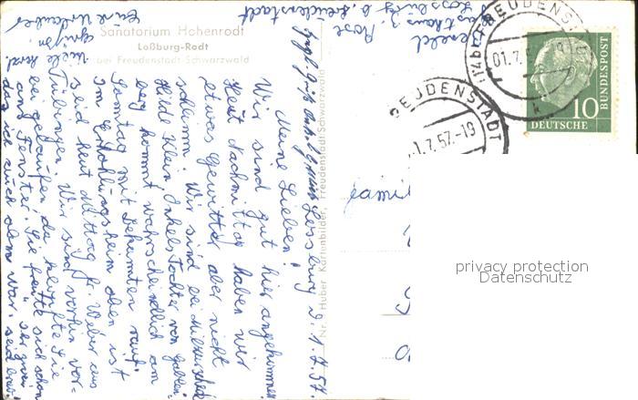71926526 alte Postkarte Hohenrodt Sanatorium Lossburg Rodt postalisch gelaufen Erhaltung siehe scans KatCode: 11110008237045