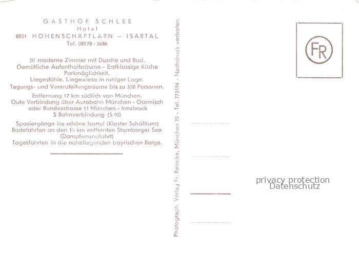 74096047 Hohenschaeftlarn Gasthof Schlee Hotel postalisch nicht gelaufen Erhaltung siehe scans [WerneD78] KatCode: 11110009184142