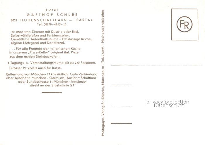 73649881 Hohenschaeftlarn Hotel Gasthof Schlee postalisch nicht gelaufen Erhaltung siehe scans [WerneD78] KatCode: 11110009184142