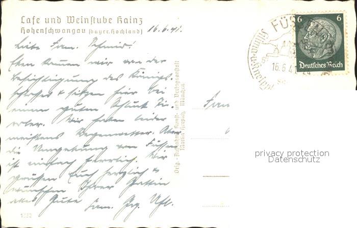 72148813 alte Postkarte Hohenschwangau Cafe und Weinstube Kainz postalisch gelaufen Erhaltung siehe scans KatCode: 11110009777169