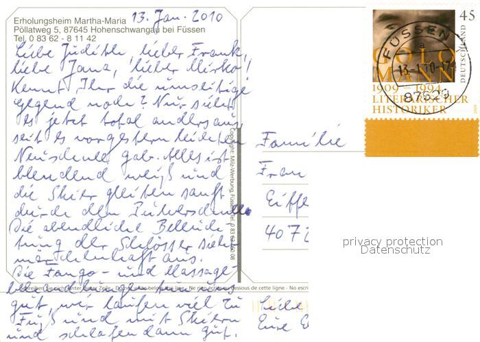 73332163 alte Postkarte Hohenschwangau Erholunghseim Martha Maria postalisch gelaufen Erhaltung siehe scans [LiesaD40] KatCode: 11110009777169