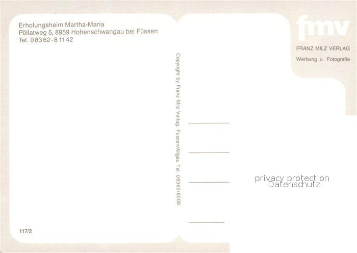 73064436 Hohenschwangau Erholungsheim Martha-Maria postalisch nicht gelaufen Erhaltung siehe scans [NatalD47] KatCode: 11110009777169