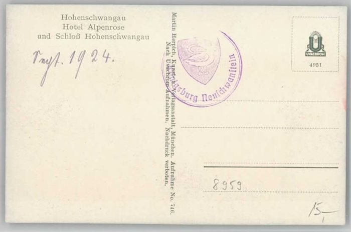 40246808 Hohenschwangau Hotel Alpenrose Schloss Postalisch nicht gelaufen Alte Ansichtskarte Postkarte Katcode 11110009777169