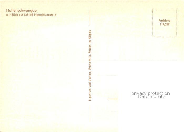 73647653 Hohenschwangau Hotel Mueller mit Schloss Neuschwanstein postalisch nicht gelaufen Erhaltung siehe scans [WerneD78] KatCode: 11110009777169