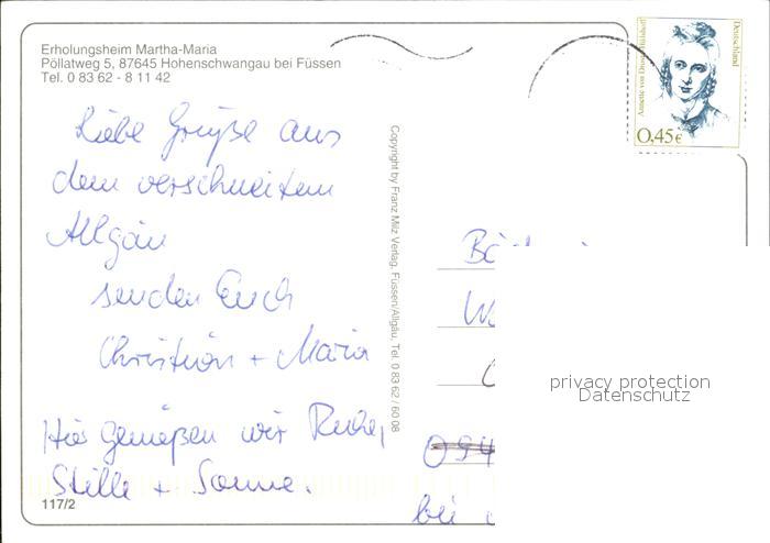 72393269 alte Postkarte Hohenschwangau Kirche Schloss Erholungsheim Martha Maria postalisch gelaufen Erhaltung siehe scans KatCode: 11110009777169