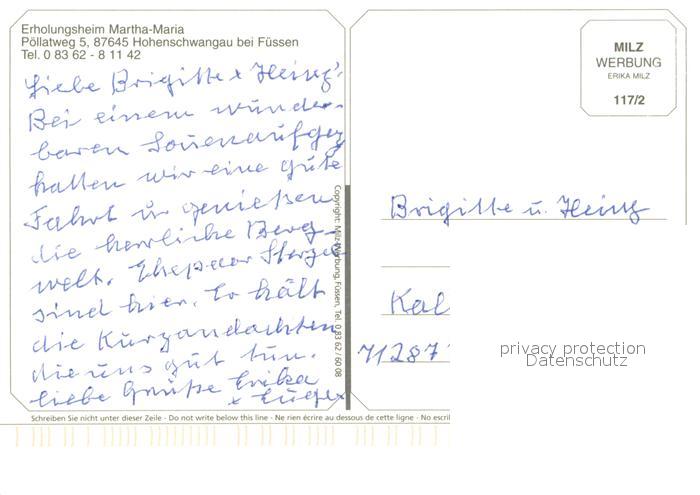 73669821 Hohenschwangau Kirche Schloss Neuschwanstein Alpenpanorama Erholungsheim Martha Maria postalisch nicht gelaufen Erhaltung siehe scans [FriedD77] KatCode: 11110009777169