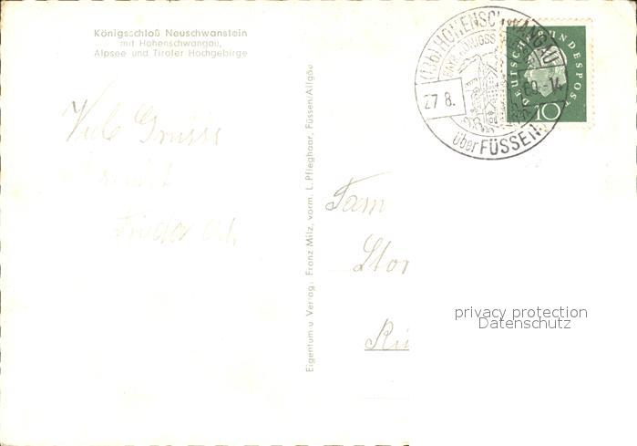 72319779 alte Postkarte Hohenschwangau Koenigsschloss Neuschwanstein mit Alpsee und Tiroler Hochgebirge postalisch gelaufen Erhaltung siehe scans KatCode: 11110009777169