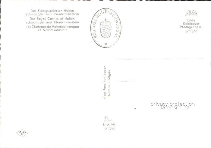 72465267 Hohenschwangau Neuschwanstein Koenigsschloesser postalisch nicht gelaufen Erhaltung siehe scans KatCode: 11110009777169