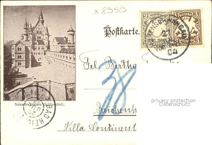 71838657 alte Postkarte Hohenschwangau Panorama mit Alpen Schlosshof Neuschwanstein postalisch gelaufen Erhaltung siehe scans KatCode: 11110009777169