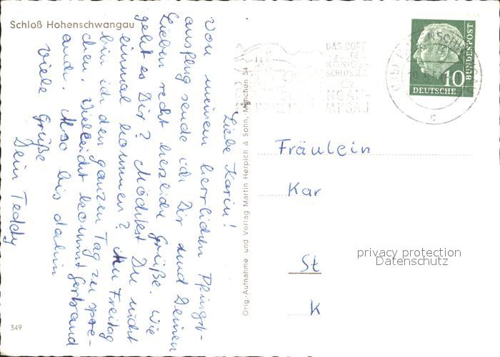 72083004 alte Postkarte Hohenschwangau Schloss postalisch gelaufen KatCode: 11110009777169