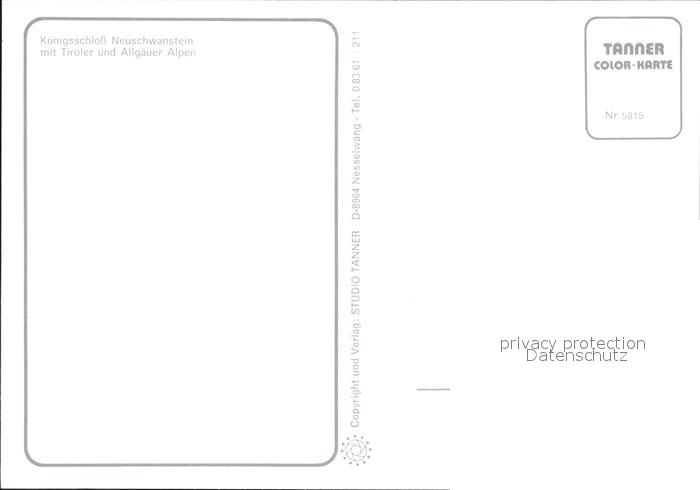 72369772 Hohenschwangau Schloss Neuschwanstein mit Tiroler und Allgaeuer Alpen postalisch nicht gelaufen Erhaltung siehe scans KatCode: 11110009777169