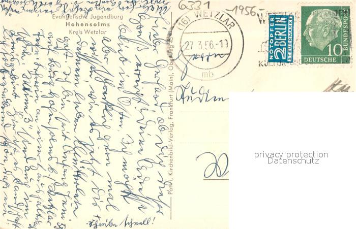 73692726 alte Postkarte Hohensolms Evangelische Jugendburg Treppenaufgang postalisch gelaufen Erhaltung siehe scans [FriedD77] KatCode: 11110006532013